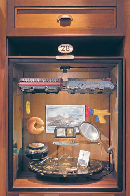 對應著小說的第28章“物件給予的安慰”。從圖片可以看出展品包含的不同物件,如玩具火車,最靠后部的一幅水彩畫,名《紅輪船》,下方的手表,鐘表等不同物件。