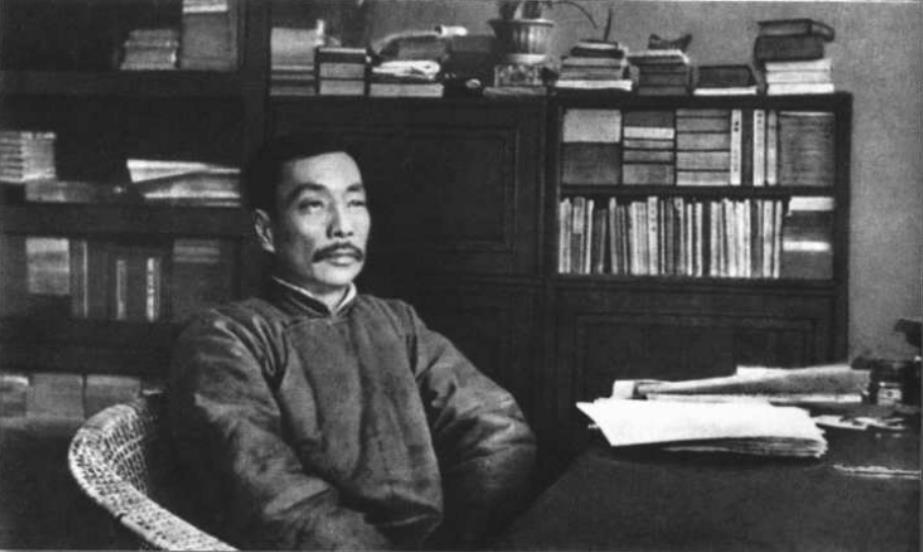 1933年5月26日攝于上海?!段餍新洝纷髡?、美國記者埃德加?斯諾翻譯魯迅小說,準備編入《活的中國》一書,極盼得到魯迅一張近照。這張單人照即專門為此事所攝,魯迅對這張照片很滿意。此照片最早與斯諾撰寫的《魯迅評傳》一起,刊登在1935年1月出版的美國《亞細亞》雜志上,以后又刊登在1936年底英國倫敦出版的《活的中國》一書的扉頁上。魯迅逝世后,于萬國殯儀館供人吊唁的巨幅遺像,就是由這張單人照放大而來。