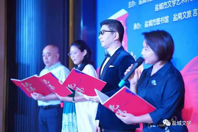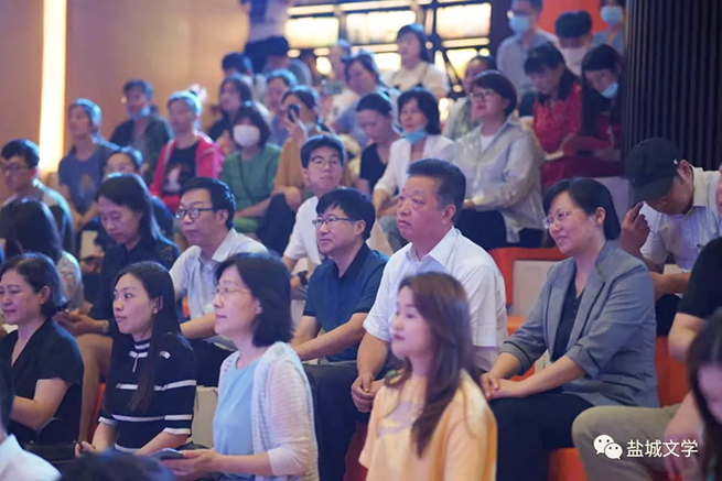 鹽城市新聞出版局副局長朱友明,市文聯(lián)黨組成員、副主席、市作協(xié)主席張曙光,市全民閱讀促進(jìn)會會長季德榮、副會長劉進(jìn),市圖書館館長黃興港,市作家協(xié)會副主席兼秘書長徐向林,鹽南高新區(qū)宣傳信息中心主任盧玉恒,建湖縣委宣傳部副部長葛菁,言+買書匯總經(jīng)理王明瑜等嘉賓及近百名市圖書館黨員代表、社會各界書友參加了分享會。分享會由知名評論家孫曙、朗誦家江華主持。