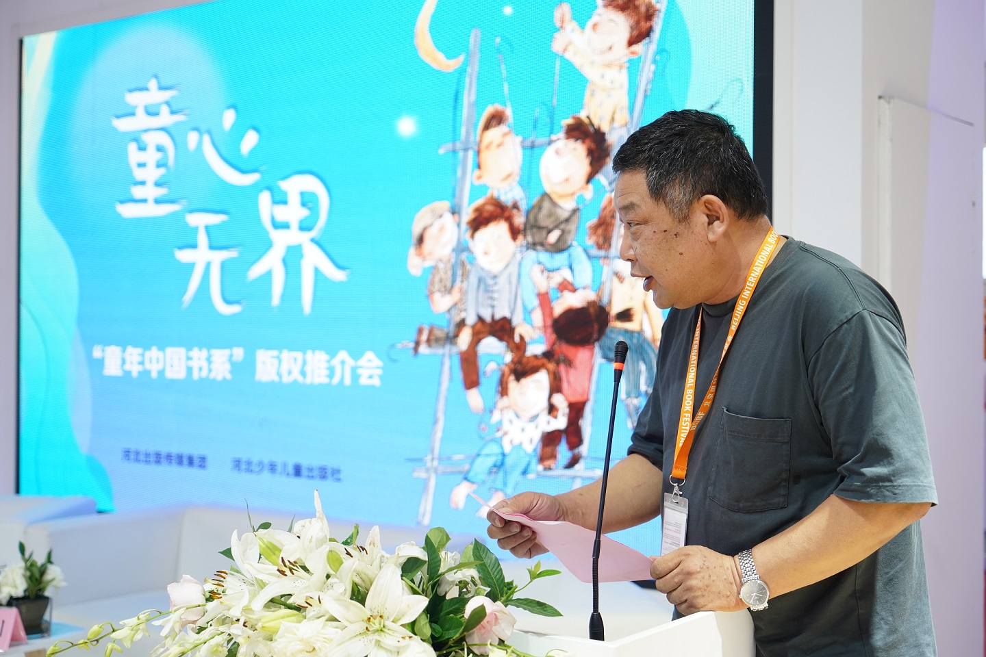 推介會(huì)上,河北少年兒童出版社社長(zhǎng)段建軍介紹了“童年中國(guó)書(shū)系”的出版情況和版權(quán)輸出情況?!巴曛袊?guó)書(shū)系”由翌平主編、冰心獎(jiǎng)獲獎(jiǎng)作家創(chuàng)作,書(shū)系從回望童年和故鄉(xiāng)的角度展現(xiàn)中國(guó)當(dāng)代社會(huì)的發(fā)展變遷。這些作品既是一個(gè)個(gè)具有個(gè)體色彩的童年故事,匯聚起來(lái)又是一幅書(shū)寫(xiě)童年的中國(guó)文學(xué)地圖和社會(huì)文化長(zhǎng)卷。
