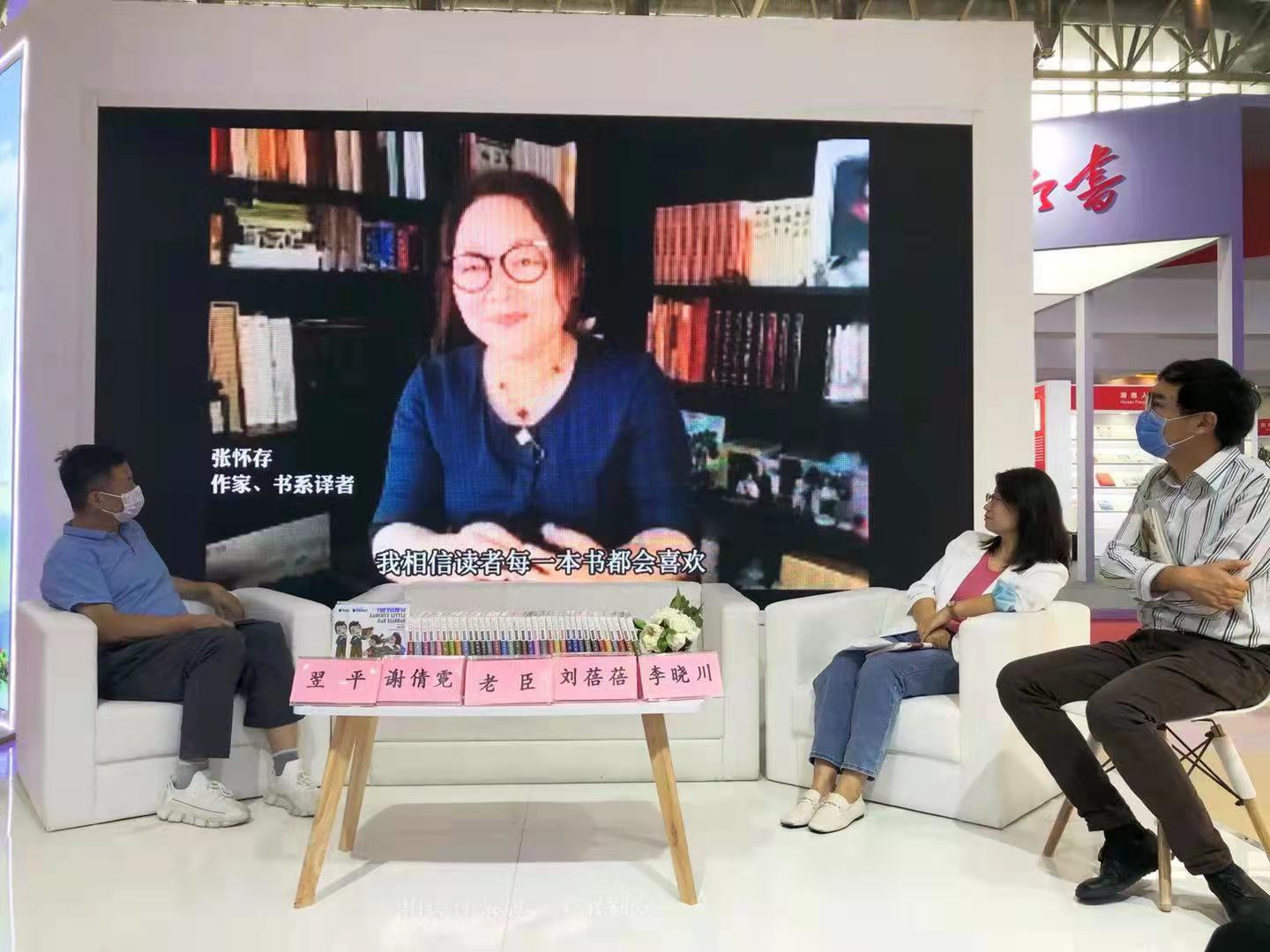“童年中國(guó)書(shū)系”英文版圖書(shū)譯者張懷存、英國(guó)卡茲班出版社編輯Karen以視頻形式參加了推介會(huì),介紹了書(shū)系在英國(guó)編輯制作情況:《高小寶的熊時(shí)代》《我的鄰居是大象》《相遇,白樺樹(shù)》三冊(cè)圖書(shū)即將在英國(guó)印刷上市。張懷存是詩(shī)人、畫(huà)家,兒童文學(xué)作家,多年來(lái)致力于兒童文學(xué)創(chuàng)作與翻譯,并將優(yōu)秀的中國(guó)兒童文學(xué)作品推介到海外。她為“童年中國(guó)書(shū)系”版權(quán)輸出和翻譯做了大量工作。