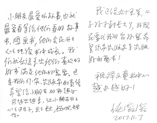 2017年任溶溶手寫卡片