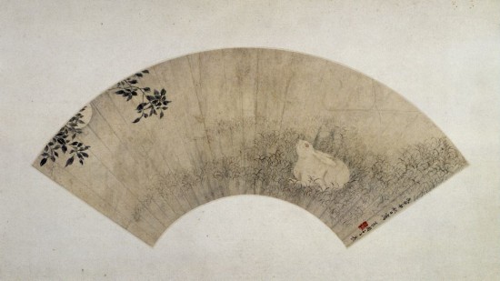 《桂花月兔圖》扇頁,清,李世倬繪,紙本,淡設(shè)色,北京故宮博物館藏