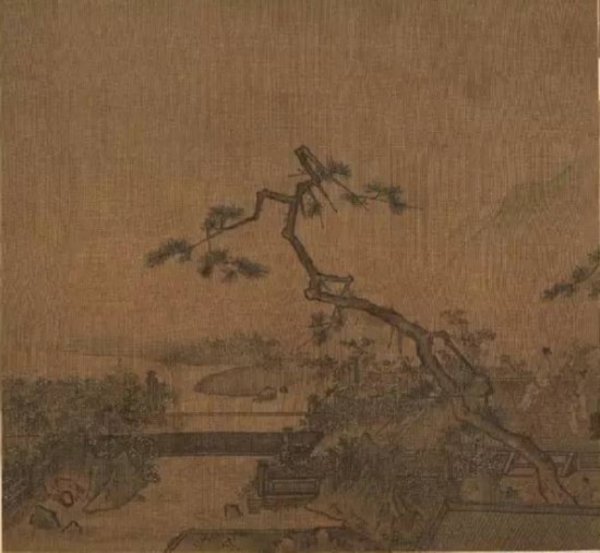 元代畫家張可觀,承襲南宋馬遠一派畫風(fēng),作品以簡馭繁,既有華美氣質(zhì)又顯得精煉蒼勁。張可觀抓住近景特寫,又讓遠景被彌散的煙霧遮擋,與天空混為一體,體現(xiàn)出幽深廣遠的味道。畫面上一位文人在平臺上臨水賞月,在意境上增添了含蓄之美。