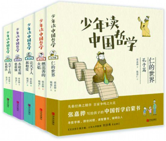 張嘉驊著、陳裕仁繪的《少年讀中國哲學》系列叢書近期由青島出版社出版。這套叢書是作家張嘉驊繼《少年讀史記》《少年讀西游記》之后,耗時三年,潛心為孩子打造的一套中國哲學啟蒙書。這套書分為仁的世界(孔子篇)、燃出善的火焰(孟子篇)、讓天下人都相愛(墨子篇)、水最柔弱也最強(老莊篇)、天平上的禮和法(荀韓篇)幾個部分,匯先秦經(jīng)典之精華,集百家爭鳴之火花。這套書以明白曉暢的語言、簡潔精當?shù)年U釋,向讀者系統(tǒng)地闡發(fā)揭示了孔子、孟子、墨子、老子、莊子、荀子和韓非子等先哲的哲學思想精華,打破哲學“艱澀玄乎”的偏見及文言的閱讀壁壘,讓孩子能夠輕松看懂百家爭鳴,在尋哲學根、探世間理的過程中愛上智慧之學,在捧腹大笑之余思考背后的道理。