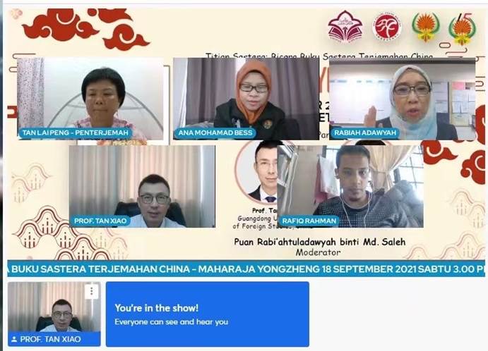 9月18日,由馬來西亞教育部國家語文局、馬來西亞作家基金會和馬來西亞漢文化中心聯(lián)合主辦的“中國文學讀者俱樂部·當代中國文學讀書會”在線舉行,分享中國作家二月河的作品《雍正皇帝·九王奪嫡》。小說的馬來語譯者鄭麗萍和廣東外語外貿(mào)大學東方語言文化學院副院長談笑教授作為主講人參加讀書會,吸引馬來語主流讀者和在校學生近1000人觀看。