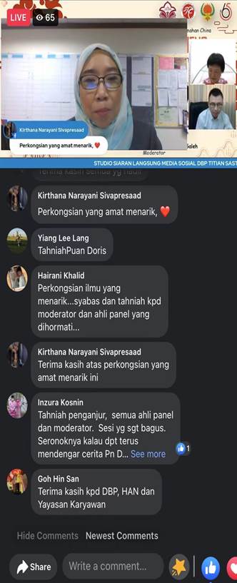 讀書會通過國家語文局官方網(wǎng)絡平臺jendeladbp.my公開面向全國中學及馬來語讀者群,臉書、推特、Youtube等渠道同時進行現(xiàn)場直播。這是馬來西亞主流讀者群首次通過馬來語讀書會接觸中囯當代長篇小說,他們紛紛通過推特等對話平臺表達自己的看法和感受,有些學校表示想邀請主講人到學校做講座,分享中國文學作品。