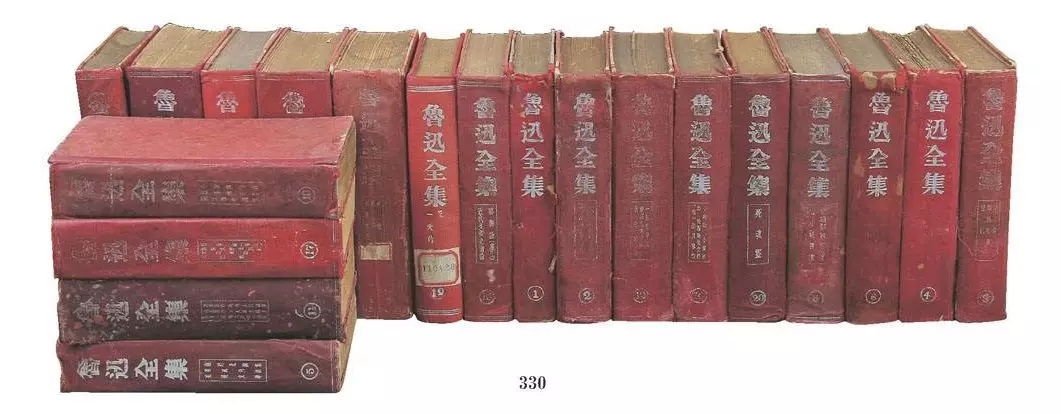 1959年出版的《魯迅全集》(10卷),此套全集的工藝是浮雕頭像紅漆面精裝帶函。依舊10卷本。