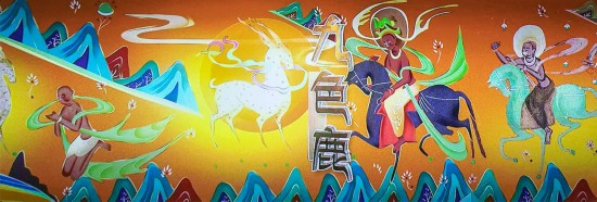 我們欣喜地看到上海木偶劇院打開(kāi)了敦煌257窟,將《鹿王本生》的故事創(chuàng)編成多媒體皮影戲《九色鹿》。