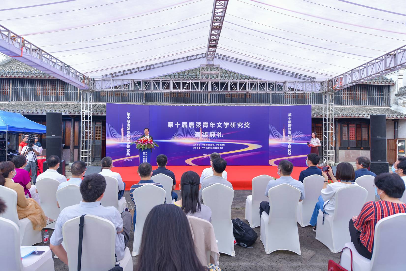 10月10日,由中國現(xiàn)代文學(xué)館、寧波市文聯(lián)主辦,中共寧波市江北區(qū)委宣傳部承辦的第十屆“唐弢青年文學(xué)研究獎(jiǎng)”在寧波慈城舉辦盛大的頒獎(jiǎng)典禮,這是該獎(jiǎng)項(xiàng)自創(chuàng)辦以來首次在唐弢的故鄉(xiāng)寧波江北頒發(fā)。中國作家協(xié)會(huì)黨組成員、副主席、書記處書記李敬澤,寧波市文聯(lián)黨組書記、主席楊勁,寧波市江北區(qū)委常委、宣傳部長卜明長出席頒獎(jiǎng)典禮并致辭。浙江省作協(xié)主席艾偉,中國現(xiàn)代文學(xué)館副館長梁飛、李洱,第十屆“唐弢青年文學(xué)研究獎(jiǎng)”評(píng)委會(huì)成員、學(xué)者王鴻生、吳俊及寧波市和江北區(qū)的相關(guān)領(lǐng)導(dǎo)出席儀式并為獲獎(jiǎng)?wù)哳C獎(jiǎng)。