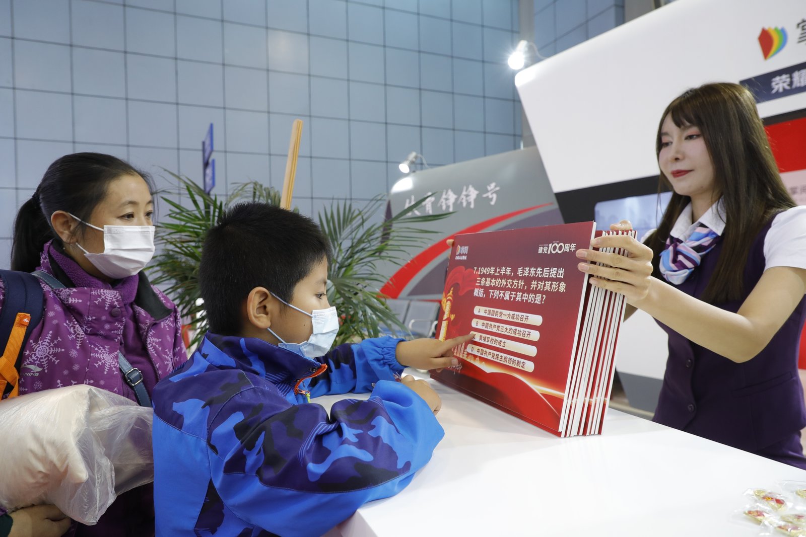 在游戲互動(dòng)區(qū),特別策劃的黨史知識(shí)問(wèn)答活動(dòng)吸引了觀展游客的目光,前來(lái)挑戰(zhàn)問(wèn)答的觀眾絡(luò)繹不絕,排起了長(zhǎng)隊(duì)。在輕松愉快的游戲氛圍中,大家對(duì)中國(guó)共產(chǎn)黨百年奮斗進(jìn)行了深入的了解學(xué)習(xí),通過(guò)互動(dòng)的形式,享受了一程極具紅色教育 意義的觀展體驗(yàn)。