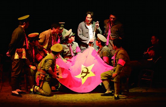 在共和國的紀念碑上,有很多為了理想舍生忘死的共產黨員的英名,他們用生命履行“永不叛黨”的入黨誓言。南京市話劇團演出的《雨花臺》表現的是極端情境下的舍生取義。1927年蔣介石發(fā)動反革命政變,大肆屠殺共產黨員,當敵人的“自白書”擺在面前,保持對黨的忠誠就等于親手簽署了自己的死亡令。惲代英、許包野、施滉、冷少農、袁咨桐等共產黨員被關押,遭毒打,但是他們寧可壯烈地死,決不茍且地生。劇中,中共江蘇省委書記、曾經獲得德國奧地利兩國哲學博士的許包野就義前對中共河北省委書記、曾經的莫斯科中山大學教授施滉說:“你我付出一人之生命,或許就將新中國的誕生提前了一個小時,萬千同仁付出生命,則理想之國,近在咫尺。這美好的一天,就留給后人吧!”這些英烈用他們的血肉之軀,譜寫了感天動地的正氣歌,表現出與日月同輝、與山河同在的精神品質。