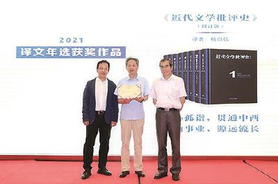 而楊自伍翻譯韋勒克這部批評史巨著的過程,即是一次非常難得的經驗。最初是他父親,同為英美文學翻譯家的楊豈深將作品一、二卷介紹給譯文社,而且他譯了兩章,請譯文社編輯過目。不久譯事中斷、以致譯稿遺失,楊自伍到現(xiàn)在都遺憾沒能看過這兩章一個字。他在發(fā)表獲獎感言回憶說:“到八十年代,張建平先生到我們家來重提舊事,那個時候我父親已經年近古稀,我不知天高地厚,就說我來試試。我父親經過考慮,征得譯文社同意,就達成了這樣一個默契。有幸的是他修改了第一卷。第二個榮幸是方平先生是第一位責任編輯,他肯定了這本譯作的基本質量,后來就順理成章延續(xù)了這么多年。”基于此,楊自伍謙稱,他個人獲獎是其次,這個獎最重要的是獎掖一種傳承精神。