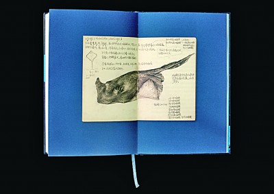 《老人與海》的故事大家并不陌生,張志奇設(shè)計(jì)的《老人與?!罚ㄈg本),封面以人和魚在海面上的倒影為主體來(lái)影射現(xiàn)實(shí)與虛幻,并隱喻作者海明威傳奇跌宕的一生。文本起始和收尾留有大量空白頁(yè)并印有漸變藍(lán)色,表達(dá)了時(shí)間的流動(dòng)和海水由淺及深的空間變化,并以此環(huán)繞主題:生命的追尋、抗?fàn)幖叭f(wàn)物生生不息的生命模式。書中還藏有另一本書,其中記錄和繪制了“線索”,表達(dá)了不同時(shí)空的存在感?!皶袝钡慕徊骈喿x,營(yíng)造出雙重的閱讀體驗(yàn)和復(fù)雜情緒,并給予讀者用以記錄的空白空間,該書也因此獲得文學(xué)類銅獎(jiǎng)。