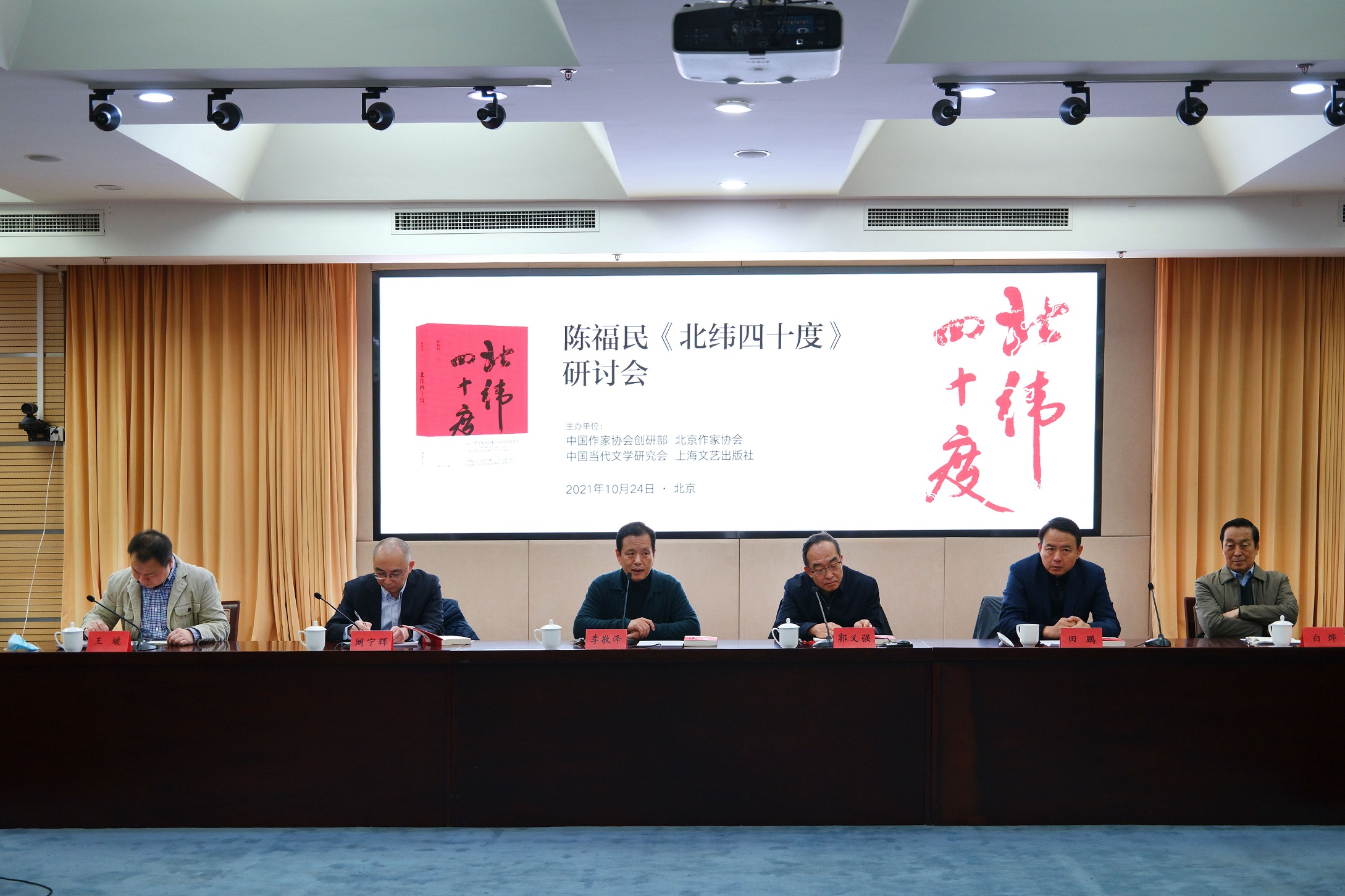 10月24日,由中國(guó)作家協(xié)會(huì)創(chuàng)研部、北京作家協(xié)會(huì)、中國(guó)當(dāng)代文學(xué)研究會(huì)和上海文藝出版社聯(lián)合主辦的“陳福民《北緯四十度》研討會(huì)”在京舉行。中國(guó)作家協(xié)會(huì)黨組成員、副主席、書(shū)記處書(shū)記李敬澤,中宣部副秘書(shū)長(zhǎng)郭義強(qiáng),上海世紀(jì)出版集團(tuán)黨委副書(shū)記、總裁闞寧輝,北京市文聯(lián)一級(jí)巡視員田鵬出席研討會(huì)并致辭。白燁、孟繁華、梁鴻鷹、賀紹俊、鐘紅明、喬葉、寧肯、周曉楓、潘濤、楊早、王繼軍、劉大先、楊慶祥、黃德海、岳雯、張定浩、木葉、李林榮、徐剛等十余位專(zhuān)家與會(huì)。會(huì)議由北京作家協(xié)會(huì)副秘書(shū)長(zhǎng)王虓主持。