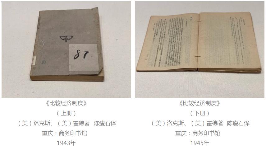 美國人洛克斯和霍德著有《比較經(jīng)濟制度》,是重要的社會經(jīng)濟學(xué)著作,由陳瘦石翻譯?!侗容^經(jīng)濟制度》上、下卷在1943 年9 月、1945 年4 月出版,是比較經(jīng)濟學(xué)專科的基礎(chǔ)理論教材,作為“中山文庫”叢書之一,由設(shè)在重慶白象街的“中山文化教育館”編輯并由商務(wù)印書館出版發(fā)行。