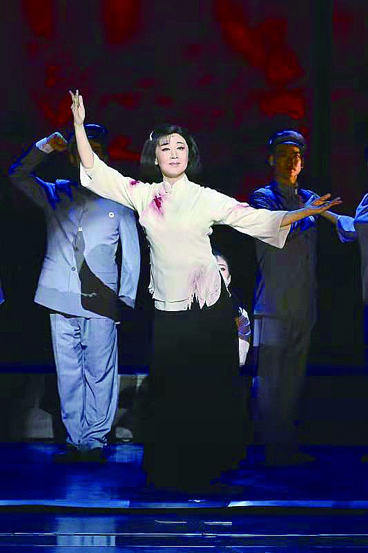 韓再芬在這部導演處女作中統(tǒng)領全劇舞臺節(jié)奏和整體藝術風格,在嚴謹?shù)默F(xiàn)實主義敘事中為劇作涂抹了絢麗的革命浪漫主義色彩。作品的二度呈現(xiàn)將寫實與虛構、現(xiàn)實與閃回、抒情與敘事、寫意與工筆、情境與情懷有機融合,編、導、演、音樂、唱腔、燈光、服化和舞美設計等儀態(tài)萬千,以獨特的藝術創(chuàng)造力深化了該劇的人文內涵和藝術魅力。尤其序幕“詠蝶”和尾聲“花放”兩個篇章,著力渲染了革命浪漫主義色彩,借助現(xiàn)代舞臺科技手段盡情抒發(fā)了創(chuàng)作者的滿腔深情,在舞臺上營造出紅霞滿天、雪花飛舞、紅梅綻放、蝶占枝頭的詩化意境?!拔沂湕罹Я瑮盍p飏直上重霄九”“寂寞嫦娥舒廣袖,萬里長空且為忠魂舞。”主創(chuàng)團隊借毛澤東詩詞《蝶戀花·答李淑一》,拓展編織出爛漫的戲劇意境,抒發(fā)了對革命先驅的無比崇敬與無限景仰之情。