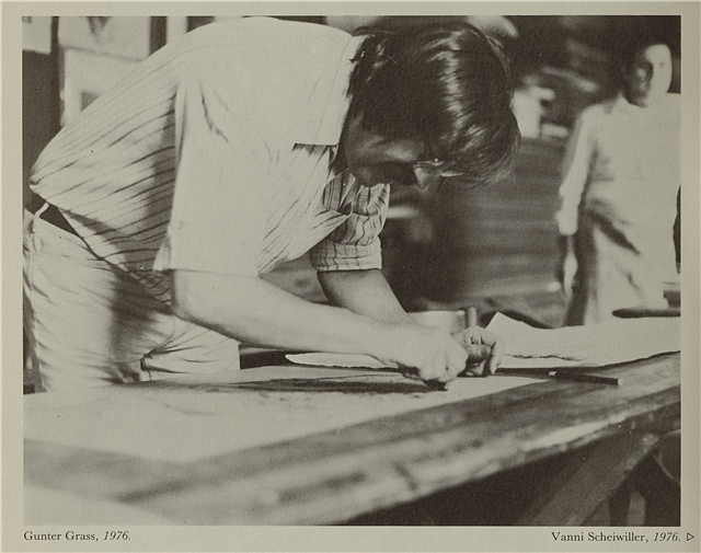 提到君特?格拉斯,人們最耳熟能詳?shù)目峙戮褪撬麑?xiě)作的小說(shuō)《鐵皮鼓》和獲得諾貝爾文學(xué)獎(jiǎng)的事實(shí)。1959年問(wèn)世的《鐵皮鼓》被瑞典文學(xué)院譽(yù)為“二戰(zhàn)之后世界文學(xué)最重要的作品之一”。文學(xué)藝術(shù)本來(lái)相通。不過(guò)也許是獲得諾獎(jiǎng)的聲名過(guò)于耀眼,致使君特?格拉斯的另一重身份長(zhǎng)期被湮沒(méi)在一頂巨型桂冠之下,鮮為人知。