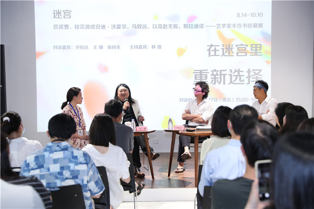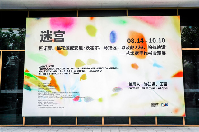 由作家許知遠(yuǎn)和王驥共同策展的“迷宮:匹諾曹、桃花源或安迪·沃霍爾、馬致遠(yuǎn),以及趙無(wú)極、帕拉迪諾——藝術(shù)家手作書(shū)收藏展”現(xiàn)場(chǎng)
