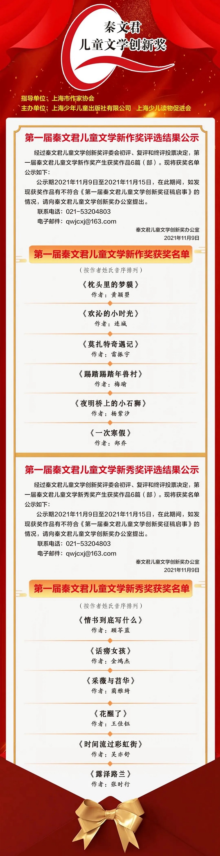 第一屆秦文君兒童文學(xué)新作獎評選結(jié)果公示