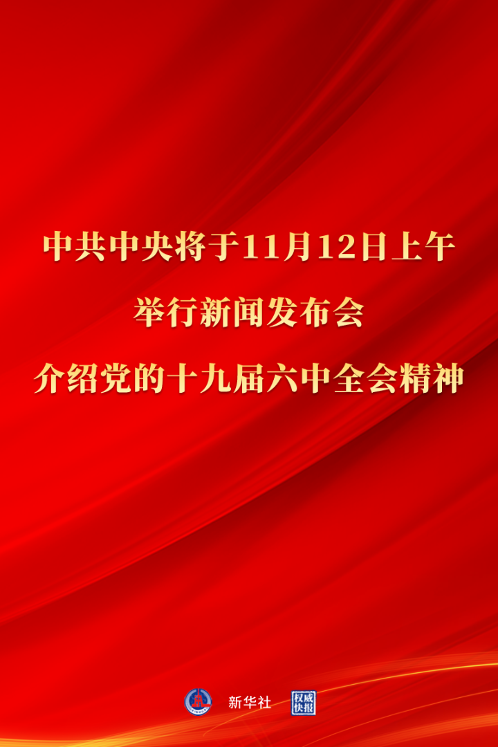 中共中央將于11月12日上午10時舉行新聞發(fā)布會
