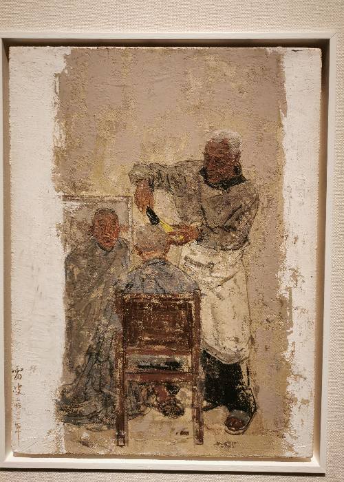 打漁的,理發(fā)的,練攤的,賣肉的,旁觀的,無事閑聊的……繁華的世間,他為何選擇了如此的角度呢?面對升任畫院院長的良機,他為何堅辭而去,跑到家鄉(xiāng)廣西隱居三年,在這些無名小卒面前駐足流連呢?看慣了雅致流利,雷波的油畫給人“跳出來”的“不一樣”的感覺。