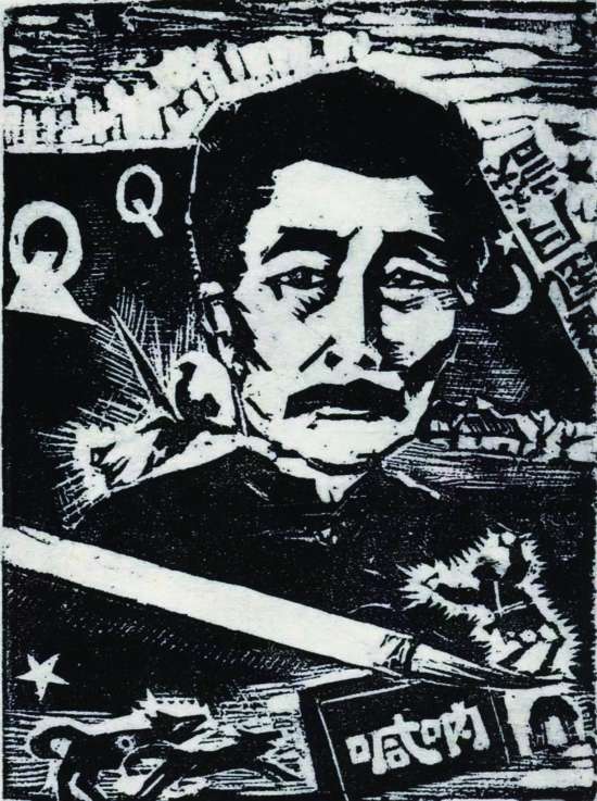 在20世紀(jì)三四十年代,魯迅的木刻形象甚至超出了其雜文的傳播力與感召力。曹白1935年創(chuàng)作的《魯迅像》刻畫了魯迅眉宇間流露出的深切的民族憂患,畫面還有魯迅文學(xué)作品中描述的“阿Q”“吠犬”以及《準(zhǔn)風(fēng)月談》《吶喊》雜文集封面等,這幅木刻或許更形象地表達(dá)了魯迅在至暗時(shí)代的“吶喊”以及他作為“愛夜的人”所領(lǐng)受的“夜所給與的光明”。此作當(dāng)然難逃當(dāng)時(shí)的黨禁,魯迅在此作旁憤怒不平地題記:“曹白刻:一九三五年夏天,全國木刻展覽會(huì)在上海開會(huì),作品先由市黨部審查,‘老爺’說指著木刻:‘這不行’,剔去了?!蹦究套髌返拿\(yùn)似乎和那個(gè)時(shí)代魯迅思想受到的官方抑制一樣。