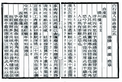 姜夔有通古樂音律之長,這是他的家學(xué)。他的名字姜夔之“夔”,是上古帝堯的樂官,而他字“堯章”,取自堯帝時(shí)代宮廷大樂《大章》。可以看出,他的家族有音樂情懷。