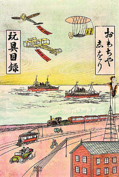 甲午戰(zhàn)爭一役,清政府大敗并賠款二萬萬兩白銀于日本,這相當于日本全國三年總收入,間接扶植了日本輕、重工業(yè),而日本的玩具工業(yè)也在此時開始起飛。1909—1910年(明治四十二年至四十三年)間,“海羅氏”輕便式鐵皮印刷機的發(fā)明,加上新式沖床被引進日本,印刷及制作鐵皮玩具的成本大幅度降低,產量接著提高,使日本一躍而成為20世紀重要的玩具制造國之一。