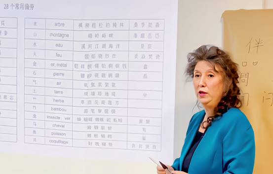文字是文學(xué)傳承的重要載體,要讓外國(guó)廣大讀者對(duì)遙遠(yuǎn)、陌生乃至有些神秘的中國(guó)文化產(chǎn)生更多認(rèn)同和親切感,離不開(kāi)對(duì)博大精深但又生動(dòng)活潑的文學(xué)之源——漢字加以介紹。高醇芳在此次分享活動(dòng)中,根據(jù)首場(chǎng)活動(dòng)中聽(tīng)眾的反饋和要求,給大家重點(diǎn)介紹了中國(guó)文字的起源以及漢字對(duì)中華文學(xué)創(chuàng)作思想的影響。高女士介紹說(shuō),從“漢字萌芽”陶文到甲骨文、鐘鼎文、石鼓文、秦簡(jiǎn)、紙帛書法,到大小篆文、章草、楷書、行書、狂草,一直到印刷字體、簡(jiǎn)體字,漢字幾千年以來(lái)一直展示著旺盛的生命力。為便于聽(tīng)眾理解,高女士還專門就漢語(yǔ)拼音和法國(guó)遠(yuǎn)東學(xué)院拼音系統(tǒng)兩種拼音進(jìn)行了細(xì)致的對(duì)照,讓讀者有了更加直觀的感受。將近兩小時(shí)的講解過(guò)程中,現(xiàn)場(chǎng)氣氛熱烈,提問(wèn)一直不斷。