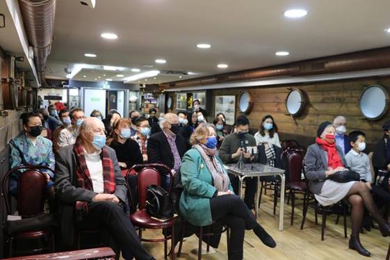 細(xì)雨綿綿,汽笛悠長(zhǎng),初冬的寒意籠罩著塞納河,卻擋不住讀者們踴躍的熱情。在疫情形勢(shì)下,11月29日,“中國(guó)文學(xué)讀者俱樂(lè)部”第二場(chǎng)活動(dòng)繼續(xù)在法國(guó)巴黎埃菲爾鐵塔對(duì)面的一條游船上舉行。俱樂(lè)部負(fù)責(zé)人、法中友好協(xié)會(huì)主席高醇芳主持活動(dòng),來(lái)自法國(guó)政界、教育界、演藝界的50多人參加了活動(dòng)。