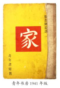 李存光先生編著的《〈家〉〈春〉〈秋〉版本圖錄研究索引》(以下簡(jiǎn)稱(chēng)“《索引》”)是我手頭的常備工具書(shū)。在這本書(shū)指引下,我淘到了《激流三部曲》的數(shù)十種稀見(jiàn)版本,其中便包括《家》的多種日文版本。第一種日譯本《家》的譯者為服部隆造。《索引》中刊登的圖片顯示該譯本僅有一冊(cè)書(shū),我手頭所藏同樣只有一冊(cè),且無(wú)版權(quán)頁(yè),以致我長(zhǎng)時(shí)間以為該譯本為單冊(cè)書(shū)。直到不久前我搜索“孔網(wǎng)”歷史拍賣(mài)記錄,才知道它實(shí)際上分上下兩卷,我淘得的為上卷,版權(quán)頁(yè)在下卷上。該書(shū)由東京青年書(shū)房刊印,印刷于昭和十六年即1941年9月30日,發(fā)行于同年10月10日,系32開(kāi)本,上下兩卷正文均為360頁(yè),訂價(jià)一元八十錢(qián)。其封面以金黃為主色調(diào),中央的紅底方框內(nèi)盛放著一個(gè)白色手寫(xiě)體“家”字,右上方為中文原著作者名和譯者名,左下方為刊印機(jī)構(gòu),均系漢字。書(shū)前有譯者序言一篇,我這里且嘗試著翻譯一段:“如今,中國(guó)已經(jīng)破除舊觀(guān)念,逐漸開(kāi)始建立新思想與新文化,因此,為了建設(shè)東亞新秩序,日本人有必要深入了解、廣泛觀(guān)察中國(guó)新的現(xiàn)實(shí);巴金的《家》描寫(xiě)了年輕一代對(duì)舊社會(huì)的詛咒、對(duì)新文化的向往,我們可以通過(guò)這部小說(shuō)了解今后中國(guó)的發(fā)展趨勢(shì)?!憋@而易見(jiàn),由于時(shí)值日本侵華時(shí)期,東瀛人翻譯及出版巴金的這部代表作并非純粹的文化交流,而是帶有濃厚的殖民主義色彩。