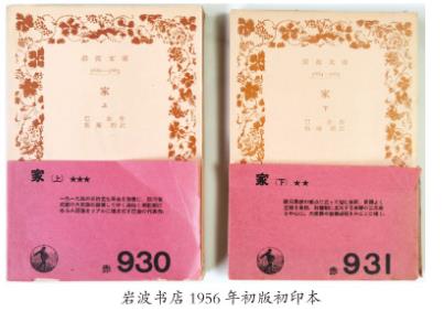 飯塚朗系日本著名漢學(xué)家,也是巴金的鐵桿粉絲,著有《島崎藤村、巴金、布爾熱的〈家〉的浪漫主義》《小論巴金——向環(huán)境挑戰(zhàn)》等論文。二戰(zhàn)結(jié)束后,飯塚朗傾心打造出《家》的新譯本。這種日譯本有兩種版本,分別由東京鐮倉(cāng)書(shū)庫(kù)和巖波書(shū)店印行。鐮倉(cāng)書(shū)庫(kù)版本系依據(jù)開(kāi)明書(shū)店的民國(guó)后期版本翻譯而來(lái),被列為“世界文學(xué)選叢書(shū)”第一種,印刷于1948年7月25日,發(fā)行于同年8月1日,系32開(kāi)精裝本,正文328頁(yè),另附《解說(shuō)》和《家系圖》,封面為綠白兩色,下半部橫亙著一座歐洲城堡,與小說(shuō)內(nèi)容格格不入。這種70余年前誕生的老版本在“孔網(wǎng)”僅現(xiàn)身一次,被我幸運(yùn)地以超低價(jià)拍得。至于巖波書(shū)店版本,乃是分訂上下兩冊(cè)的64開(kāi)本。與青年書(shū)房的兩卷本不同,巖波書(shū)店的初版本上下兩冊(cè)都有版權(quán)頁(yè),分別貼有版權(quán)票,出版時(shí)間有先后,各有訂價(jià),可分開(kāi)銷(xiāo)售。其上冊(cè)初版初印于昭和三十一年即1956年10月5日,正文311頁(yè),另附《高家系圖》,訂價(jià)120日元;下冊(cè)初版初印于同年11月26日,正文196頁(yè),另附《解說(shuō)》和“巖波文庫(kù)”所收錄書(shū)籍的發(fā)行廣告,訂價(jià)80日元。這種口袋書(shū)售價(jià)低廉,便于攜帶,受到市場(chǎng)青睞,一再加印,我有幸見(jiàn)過(guò)1963年11月的四印本和1985年9月的五印本;另有一種2019年2月印行的九印本也有網(wǎng)上銷(xiāo)售記錄,系壓膜本,有書(shū)衣。我收藏的該書(shū)系初版初印本,品相完好,攜帶有《索引》中未見(jiàn)的粉紅色書(shū)衣,系網(wǎng)上孤品。書(shū)衣上的文字顯示,其上冊(cè)為“巖波文庫(kù)”赤930種,下冊(cè)為赤931種。需要說(shuō)明的是,巖波書(shū)店版本與鐮倉(cāng)書(shū)庫(kù)版本在文字上存在出入。在新版本出版前,譯者曾委托另一位漢學(xué)家岡崎俊夫依據(jù)人民文學(xué)出版社1953年6月的新版本進(jìn)行修訂,糾正了一些文字上的硬傷,刪除了一些冗長(zhǎng)的字句。飯塚朗在《〈家〉日譯本解說(shuō)》一文中,披露了翻譯的艱辛過(guò)程:“我在翻譯這本書(shū)時(shí)最成問(wèn)題的就是稱(chēng)呼。行輩即前輩后輩的順序要根據(jù)講話(huà)人的地位而有所不同。小說(shuō)中雖基本上從覺(jué)慧這一代人去稱(chēng)呼,可是即便是同輩人之間,也要因說(shuō)話(huà)者而異。若是年長(zhǎng)的男子,要稱(chēng)他‘哥’,對(duì)年長(zhǎng)的女子要稱(chēng)‘姐’或者‘姊’,對(duì)年小的則稱(chēng)‘弟’‘妹’。所以覺(jué)慧自己也有時(shí)被稱(chēng)作‘三哥’,有時(shí)被稱(chēng)作‘三弟”。此外,一稱(chēng)呼‘老太爺’便含有種對(duì)賦閑隱居者的敬意在內(nèi),孩子們懷著敬畏之情稱(chēng)之為‘爺爺’,兒子們要稱(chēng)呼‘父親’,通俗點(diǎn)兒的叫法是‘爸’或‘爹’,從別的支系上論,外甥或侄子們要叫‘大舅’。這實(shí)在煩雜費(fèi)解,對(duì)于日本人來(lái)講很不習(xí)慣。若是親臨那家族的話(huà),也許能清楚地了解它的輩分關(guān)系。在日本沒(méi)有伯父、叔父之分,把中國(guó)的大家族內(nèi)的幾叔、幾伯翻譯過(guò)來(lái)反而沒(méi)有真實(shí)感,因此我索性使用書(shū)中原話(huà)。稱(chēng)排行老三的年輕主人時(shí),叫‘三少爺’,稱(chēng)最大的小姐為‘大小姐’,稱(chēng)琴時(shí)就叫‘琴表姐’?!?/p>