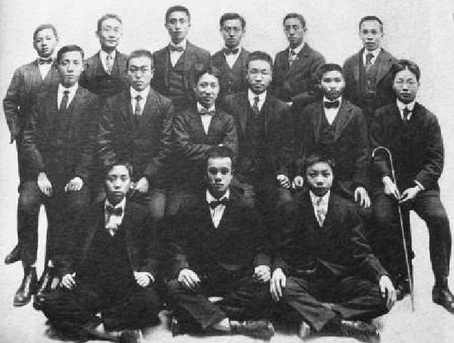 1919年11月,李劼人(二排左三)、王懷仲(二排右三)等赴法前在上海留影。