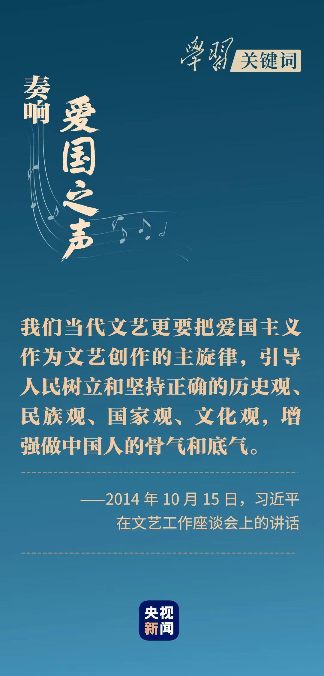 “我們要高揚(yáng)愛國主義主旋律,用生動的文學(xué)語言和光彩奪目的藝術(shù)形象,裝點(diǎn)祖國的秀美河山,描繪中華民族的卓越風(fēng)華,激發(fā)每一個(gè)中國人的民族自豪感和國家榮譽(yù)感。”