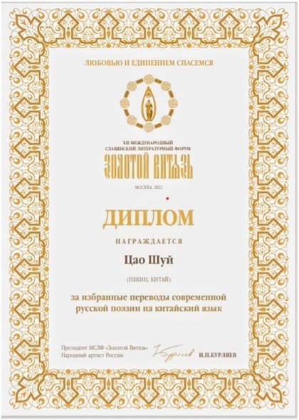 日前曹誰的譯著《透明的時間》獲得第12屆俄羅斯國際斯拉夫文學(xué)論壇金騎士獎(Золотой Витязь)。金騎士獎從2010年開始評獎,每年評給俄羅斯和其他文化生活中所有代表創(chuàng)意活動的所有藝術(shù)門類——電影、戲劇、音樂、藝術(shù)、文學(xué)、繪畫,在俄羅斯影響巨大,被人稱為“俄羅斯的普利策獎”。俄羅斯文學(xué)評論家伊戈爾·佐洛托斯基、作家弗拉基米爾·克魯平、詩人德米特里·米茲古林獲得主獎,曹誰所獲的金騎士獎為文學(xué)門類中的翻譯獎。曹誰的獲獎譯著為《透明的時間》,是俄羅斯杰出詩人、俄羅斯作家聯(lián)合會副主席瓦迪姆·特里金(Vadim Terekhin)的代表作,他也是俄羅斯當(dāng)代代表詩人之一,作品具有廣泛的影響。這本詩集原著為俄文,曹誰是由英文轉(zhuǎn)譯為漢語的,最近即將由北岳文藝出版社出版。
