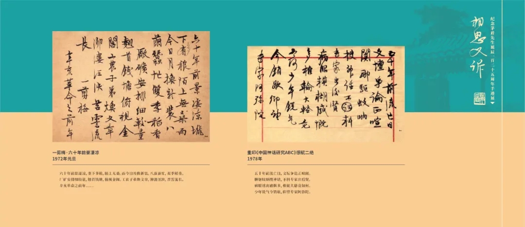 茅盾先生是文人書法中的“瘦硬”者最為典型的代表之一。茅盾一生勤于著述,始終保持著使用毛筆書寫的習(xí)慣,無論是辦公室,還是家中書房,毛筆、硯臺都是他的案頭常物。茅盾從來不認(rèn)為自己是書法家,這其實代表了他們那一代文人整體的價值觀:年輕的時候要多做學(xué)問,寫字應(yīng)該是業(yè)余的,但寫字好這是最基本的。此次手跡展擷取了部分代表性手稿制成條幅,力圖呈現(xiàn)出茅盾先生手跡的基本面貌。欣賞茅盾先生的手跡,不僅能感受到歷史的脈動,也能收獲豐沛的藝術(shù)享受。