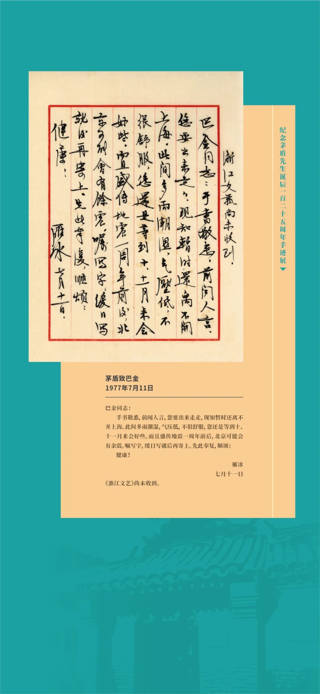 中國現(xiàn)代文學(xué)館舉辦“紀(jì)念茅盾先生誕辰125周年手跡展”