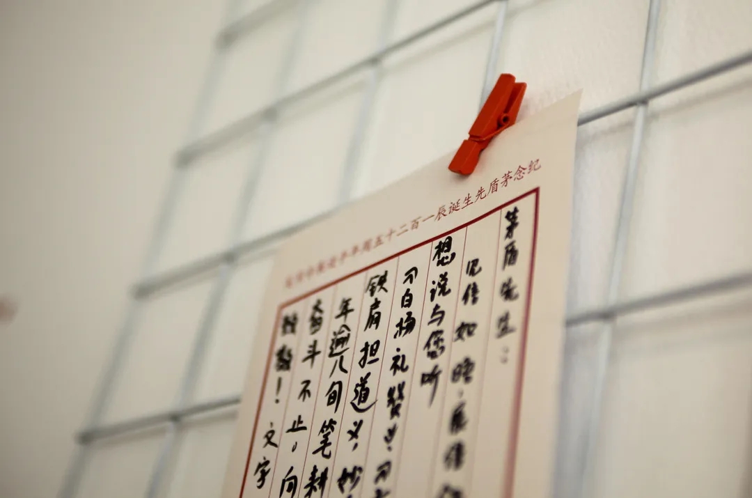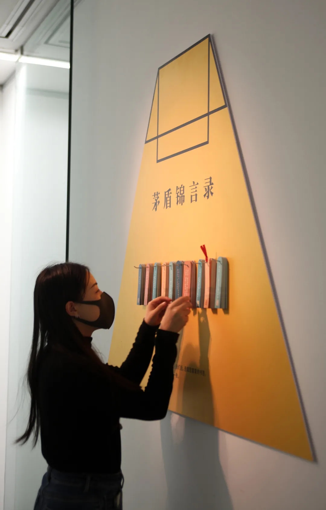 將觀看展覽后的想法、讀過著述后的感悟,和想對文學(xué)前輩交流的觀點,通過薄薄信紙盡數(shù)寫下。這是一封沒有回信的信件,卻可以靜置在墻面上,等待下一位參觀者讀罷的會心一笑。