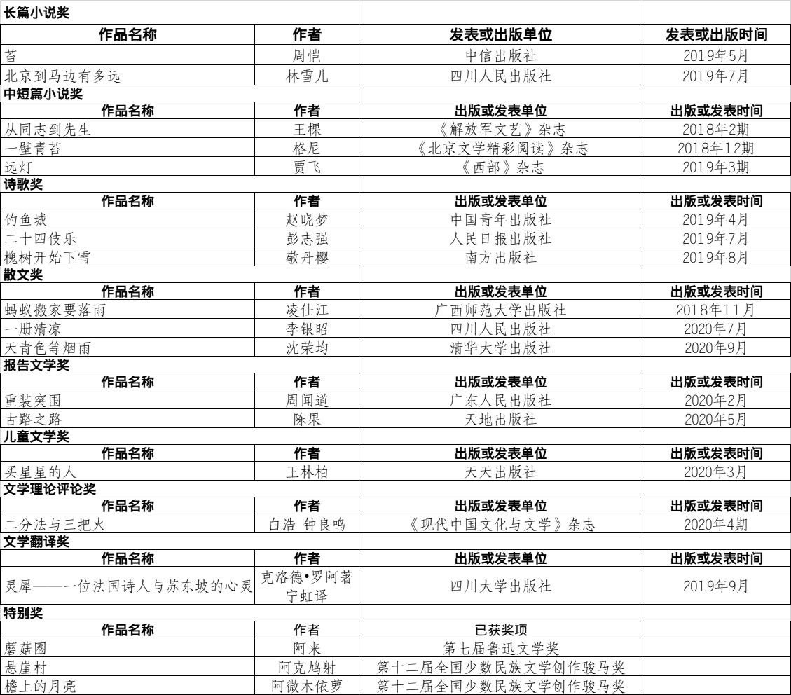 第十屆四川文學(xué)獎獲獎作品名單