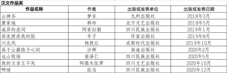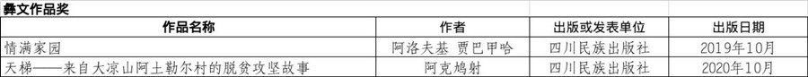 第八屆四川省少數(shù)民族文學(xué)創(chuàng)作優(yōu)秀作品獎獲獎作品名單