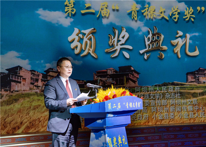 12月24晚,第二屆“青稞文學(xué)獎(jiǎng)”頒獎(jiǎng)典禮舉行。施戰(zhàn)軍代表中國(guó)作協(xié)到會(huì)祝賀,石一寧、馬爾康市委書記李清勇分別致辭,陳亞軍宣讀授獎(jiǎng)詞,楊星主持頒獎(jiǎng)。