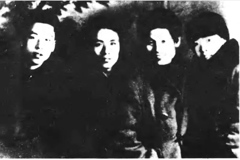 1933年冬東北作家在哈爾濱,右起:蕭紅、蕭軍、羅烽、梁山丁?!妒捈t全集》(2011年黑龍江大學(xué)版)將之系年為1934年。