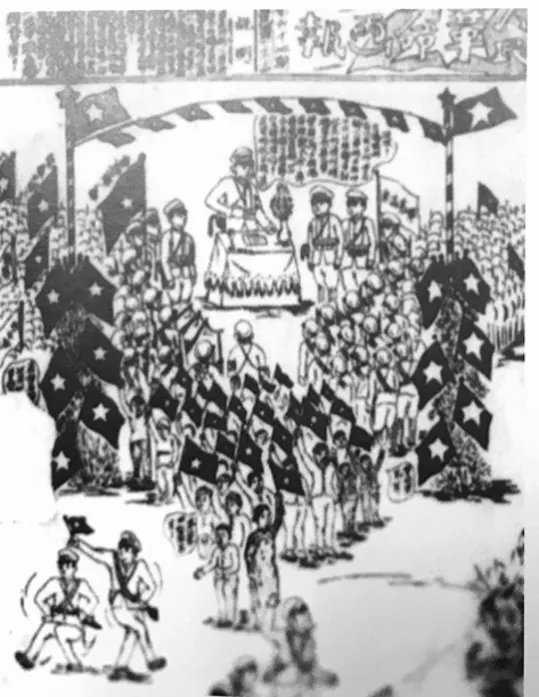 《人民革命畫報(bào)》所載漫畫《東北抗聯(lián)第1軍、第2軍在那爾轟會(huì)師》
