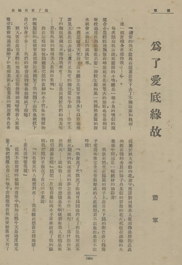 [14][35]蕭軍:《為了愛底緣故》,《文季月刊》1936年11月第1卷第6期。