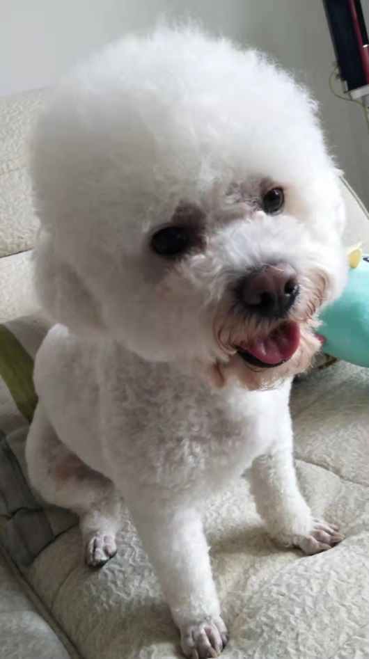 自身最可愛的變化,是可以隨意控制自己的體重,想胖就胖,想瘦就瘦,別人很羨慕,哈哈哈!家里養(yǎng)了一條六歲的狗狗,從大學(xué)畢業(yè)的時(shí)候開始養(yǎng)的比熊犬,叫做小魚兒,從它剛出生就陪我碼字,它的呼吸跟我碼字的節(jié)奏是一樣的,我的鍵盤聲要是停下來,他就會警覺地站起來瞪著我,我的監(jiān)工……