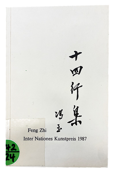 1987年,馮至獲聯(lián)邦德國國際交流中心藝術(shù)獎(jiǎng)之后,蘇坎普出版社出版了完整的《十四行集》,題名《馮至:十四行集》,除了27首德語翻譯外,還附有中文原文。目前該譯本被德國多所大學(xué)及州立圖書館收藏,如慕尼黑大學(xué)中心圖書館、巴伐利亞州立圖書館、柏林自由大學(xué)圖書館、柏林州立圖書館、漢堡大學(xué)圖書館以及位于萊比錫的德國國家圖書館等。