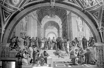 拉斐爾名畫《雅典學(xué)院》,畫面正中為柏拉圖和亞里士多德。資料圖片