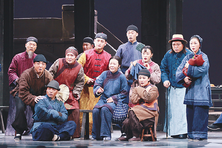 第二,舞臺呈現(xiàn)具有高度的綜合性、有機(jī)性、整體性。許多扇大門的推拉組合,包括色調(diào)、音樂、燈光等都和情節(jié)人物相得益彰。不同場景的調(diào)度、不同人物命運(yùn)的造型安排,在舞臺上形成了有機(jī)整體,使作品具有了很高的文化品位。整臺演出具有大團(tuán)氣象,尤其是主演李晶花善于用聲音來抒情,用聲音來塑造人物,爆發(fā)力很強(qiáng)。音樂、作曲包括配器都貼近劇情,既有北方的壯烈,也有南方的清新,二者融為一體又交相生輝。