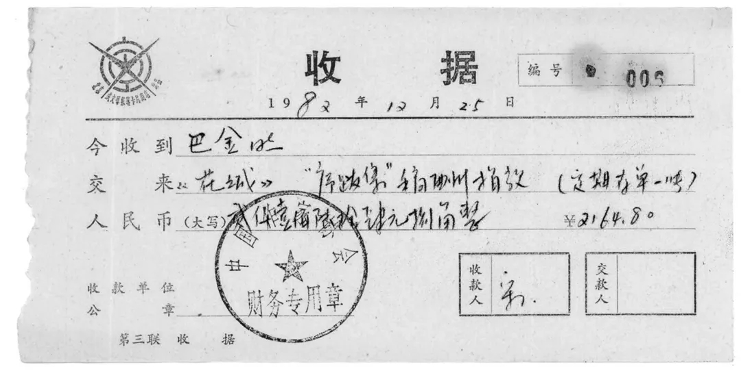 巴金曾叮囑主持四川人民出版社工作的侄子李致:“以后不要再給我寄稿費(fèi)了。今后所有我的著譯的稿酬,新出的書如《回憶與探索》和十卷本《選集》的全部稿費(fèi)一律贈現(xiàn)代文學(xué)館,已出各書如有再版的機(jī)會,稿費(fèi)也送給文學(xué)館(蕭珊的譯著也包括在內(nèi))。以后請一定照辦。”[43]在1985年和1986年巴金給文學(xué)館楊犁館長的信中也多次談到捐贈稿費(fèi)的事情,[44]巴金故居藏有一份“巴金同志捐款清單”,內(nèi)容如下: